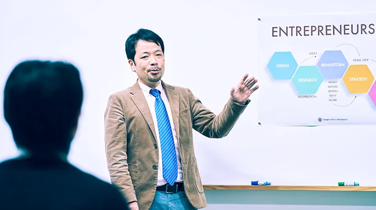製造業を行う企業の固有の技術を守って発展させていくための方法論や、製品が持つ価値を戦略的にマネジメントするための理論や方法を体系的に学ぶ講義です。また、イノベーションを起こしてビジネスをサステナブルにするための方法論や組織構造の在り方についても学びます。