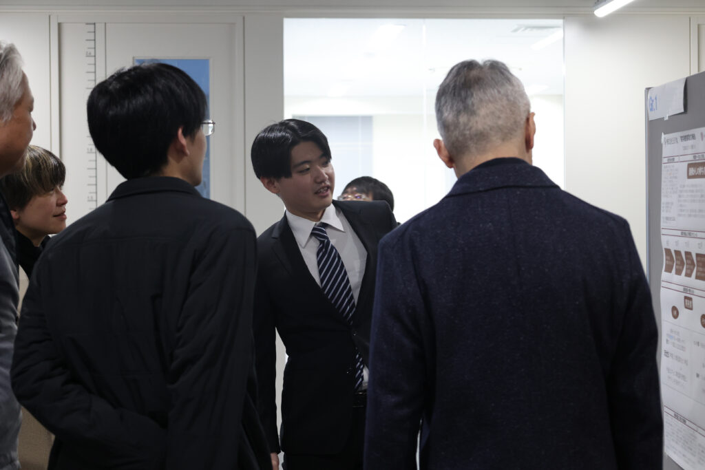 初めての試みとして、ポスターセッション形式での公開報告会を実施し、企業の皆様(45社87名)にも実習の成果を披露しました。