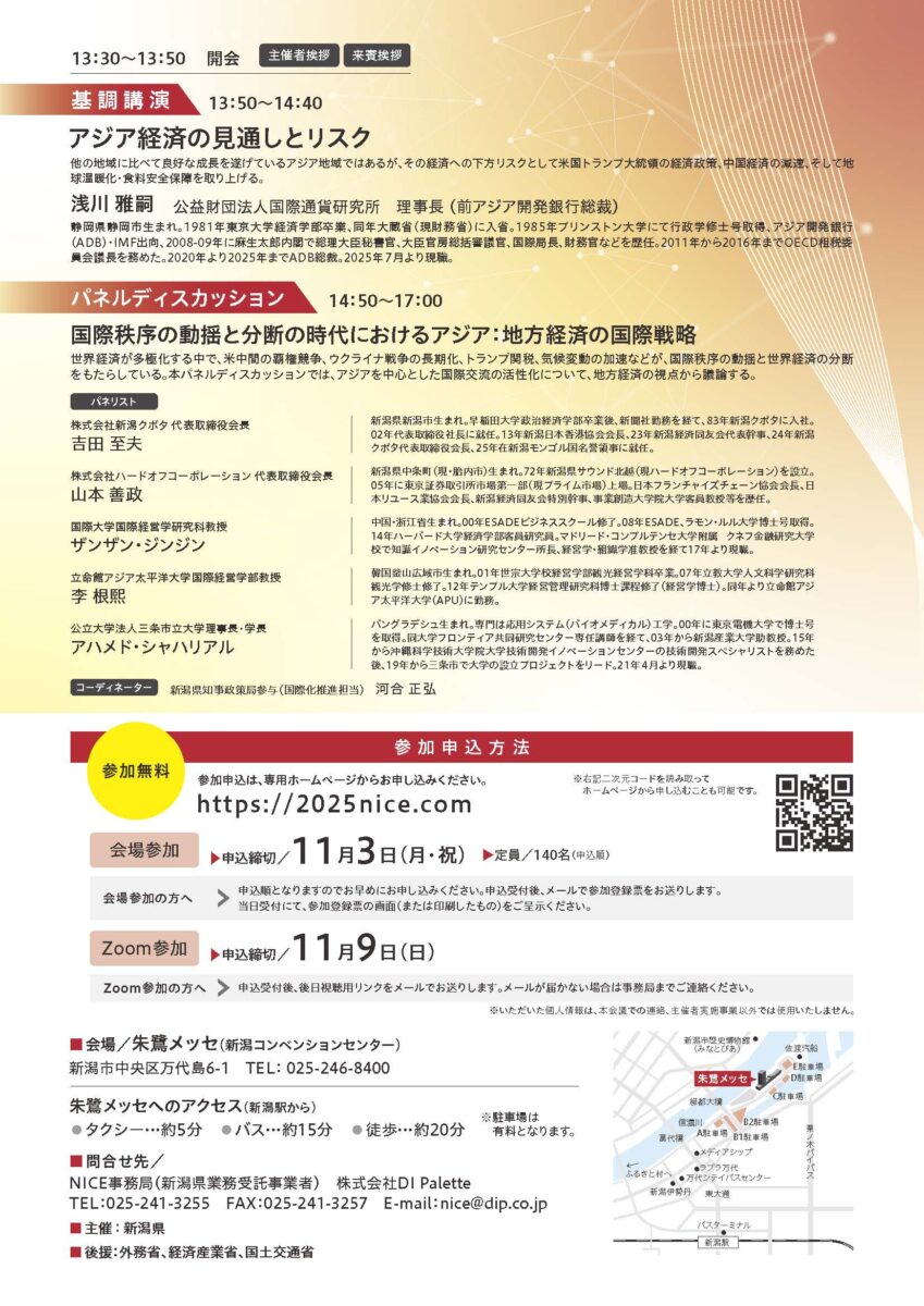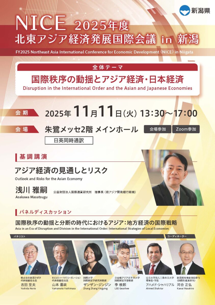 新潟県が主催する「2025年度北東アジア経済発展国際会議in新潟」にパネリストとして学長が登壇します。