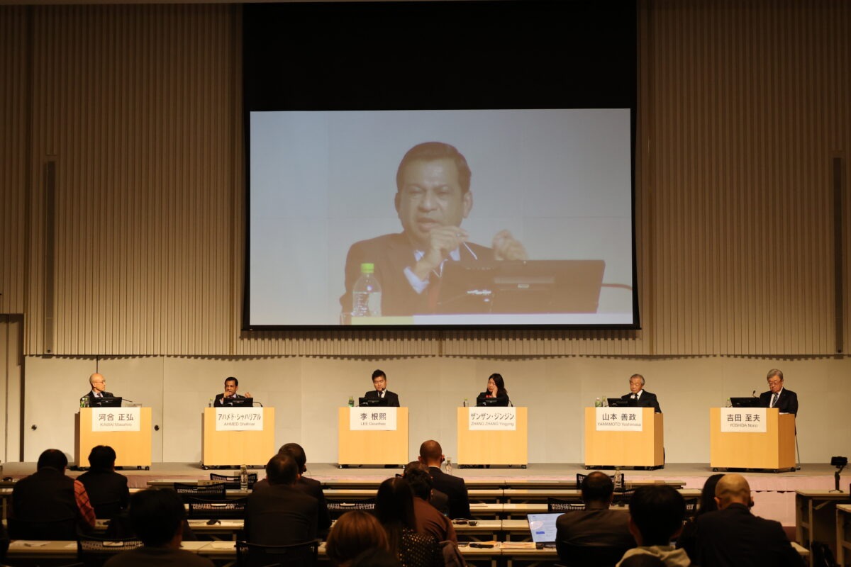 前アジア開発銀行総裁で、公益財団法人国際通貨研究所の浅川雅嗣氏の講演後、パネリストの一人として学長が日本の人口減少や人材不足の対応について自身の経験と意見を述べました。